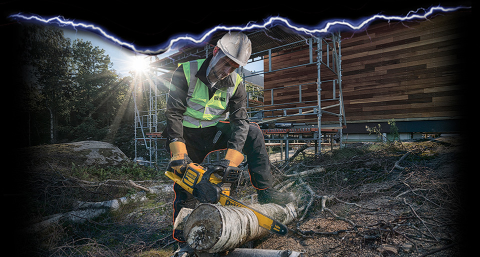 DCM575 er den første høyeffekts børsteløs kjedesagen fra DEWALT. Som en del av XR FLEXVOLT sortimentet gjør det at man kan bytte mellom forskjellige bruksområder som tre-, mur- eller rørarbeider til landskapsbehandling på bare noen få sekunder. Det 54V batteriet kombinert med den børsteløse XR FLEXVOLT motoren og Oregons sverdet/kjedet, gjør at DCM575 kjedesag kan kutte enkelt og raskt gjennom tykke trestammer. Med 54V XR FLEXVOLT motor leverer kjedesagen en uovertruffet ytelse, uten bryderier med startsnorer, avgasser eller vedlikehold av motor. Kjedesagen er full av egenskaper som gjør at bruk og vedlikehold blir enkelt, som f.eks. verktøysfri stramming av kjedet og automatisk smøring. DCM575 kjedesag tilfører mer allsidighet til XR FLEXVOLT sortimentet.