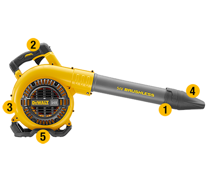 DCM572 blåseren er den første høyeffekts håndholdte 54V blåseren fra DEWALT. Den børsteløse motoren avgir mer en 400 m³/min og mer enn 193 Km/t når det gjelder lufthastighet. På grunn av det 54V Lithium-Ion batteriet så er det ikke behov for å dra i noen startsnor eller innånde avgasser fra bensin under bruk - bare å løfte den opp og blåse. Blåseren er designet med tanke på komfort og kontroll og har egenskaper som låsbar variabel hastighetsbryter noe som gjør at brukeren kan opprettholde valgt effektnivå uten å måtte holde nede bryteren, belagte håndtak for grepskomfort pluss at det buede rørdesignet gir kontroll over rotasjon og reduserer slitasje. DCM572 er den mest effektfulle blåseren i DEWALT sortimentet og utvider allsidigheten på ditt XR FLEXVOLT system