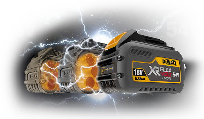 Denne innovasjonen betyr at for første gang kan de fleste arbeidsoppgaver på et bygg gjennomføres ved bruk av et 54V batteri - uten å være avhengig av strøm. XR FLEXVOLT er det eneste batteriet på markedet som kan brukes både på 54V og 18V - noe som gjør det kompatibelt med eksisterende XR-produkter.